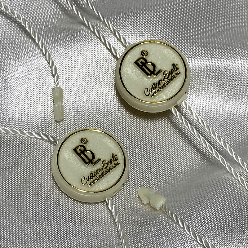 Kunststoff-Siegel ST-M88 mit elegantem Design und runder Form, das auf zwei Seiten mit dem Markennamen oder dem Emblem/Warenzeichen versehen werden kann und sich ideal für Produkte wie Kleidung, Taschen und Schuhe eignet. Dieses Siegelmodell wird aus hochwertigen Materialien unter Verwendung der fortgeschrittenen Technologien auf dem Gebiet hergestellt.