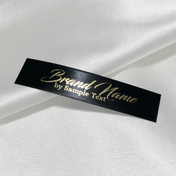 Benutzerdefiniertes Etikett TL-M127 gedruckt auf satiniertem Textil, geeignet für Kleidung und verschiedene Kleidungsstücke.