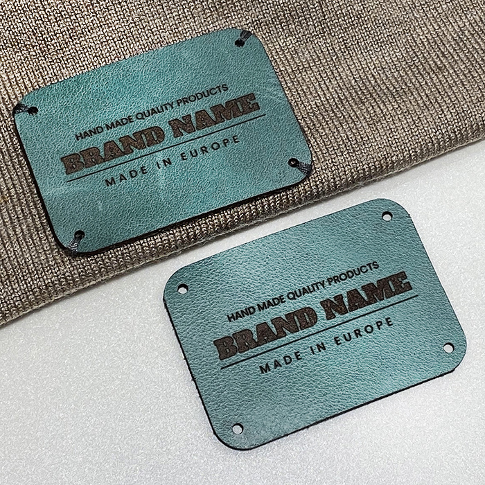 Personalisiertes Etikett EP-M23 aus Naturleder für Kleidung, Taschen, Schuhe und verschiedene Bekleidungsaccessoires.