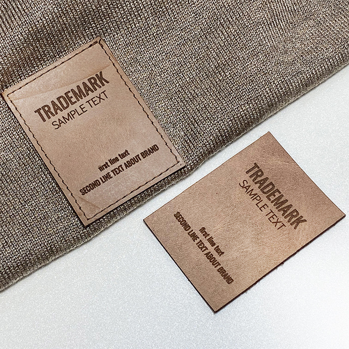 Personalisiertes Etikett EP-M39 aus Naturleder für Kleidung, Taschen, Schuhe und verschiedene Bekleidungsaccessoires.