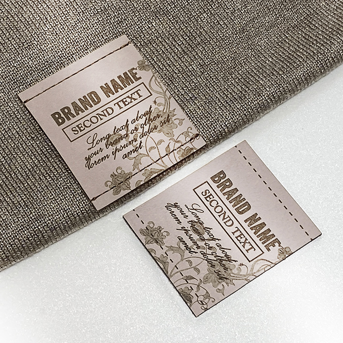 Personalisiertes Etikett EP-M41 aus Naturleder für Kleidung, Taschen, Schuhe und verschiedene Bekleidungsaccessoires.