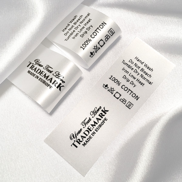 Wäscheetiketten geeignet für kleidung und verschiedene textilwaren, insbesondere bekleidungsprodukte, personalisiert auf feinem satin der weißen farbe. Dieses Modell eines Textiletiketts wird mit den modernsten Technologien im Bereich des Digitaldrucks auf Textilmedien hergestellt. Die Etiketten werden im Thermotransfer-Verfahren auf Spezialsatin gedruckt, das sich durch eine beeindruckende Druckqualität und hohe Waschbeständigkeit auszeichnet. Die gedruckten Etiketten werden automatisch entsprechend den angegebenen Maßen geschnitten.