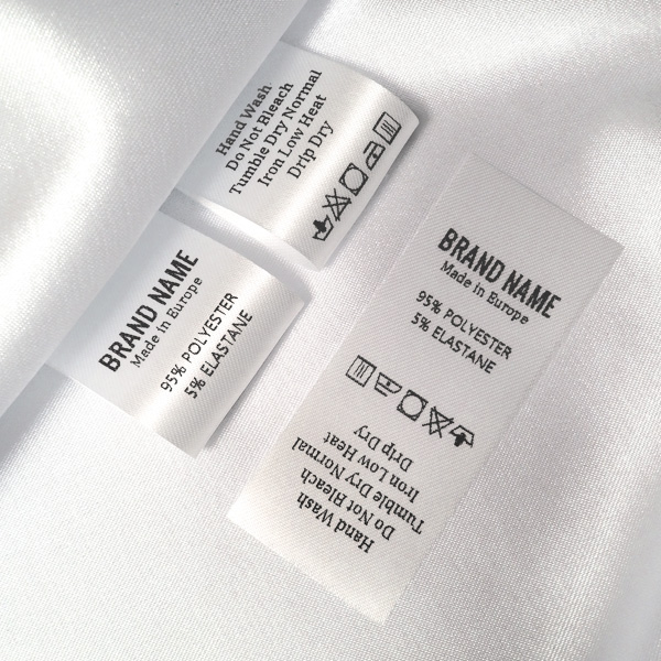 Wäscheetiketten für kleidung, personalisiert mit Digital gedruckten texten auf weißem satin, geeignet für jedes kleidungsprodukt. Dieses Modell eines Textiletiketts wird mit den modernsten Technologien im Bereich des Digitaldrucks auf Textilmedien hergestellt. Die Etiketten werden im Thermotransfer-Verfahren auf Spezialsatin gedruckt, das sich durch eine beeindruckende Druckqualität und hohe Waschbeständigkeit auszeichnet. Die gedruckten Etiketten werden automatisch entsprechend den angegebenen Maßen geschnitten.